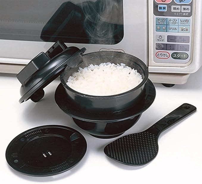 ●「電子レンジ専用炊飯器 備長炭入り ちびくろちゃん」は、チンするだけでご飯が炊けるレンジ調理道具です。