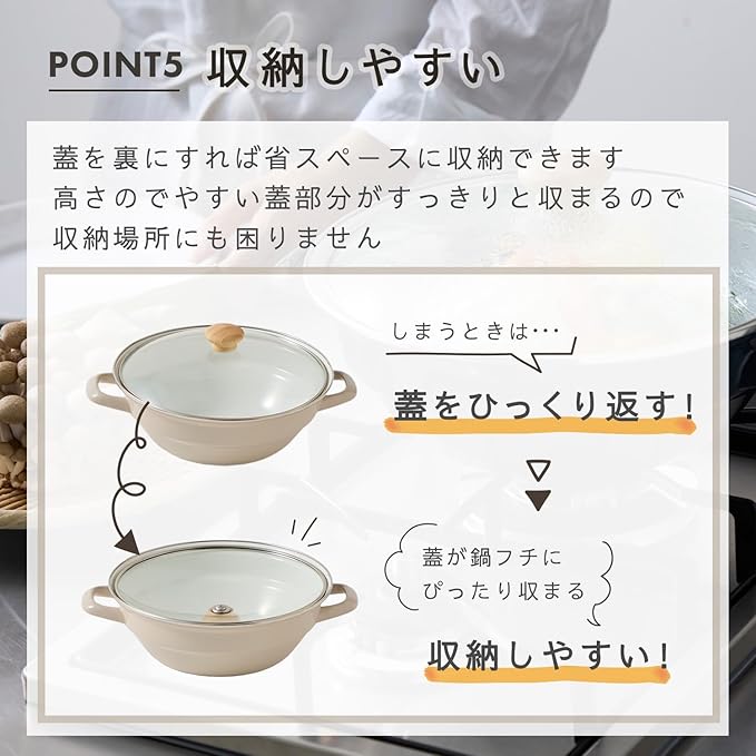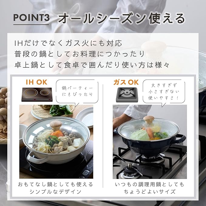 ・琺瑯製で熱効率が高く、保温性も高いため卓上鍋料理にぴったり