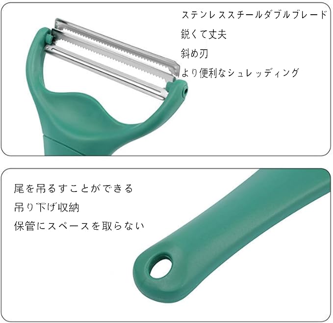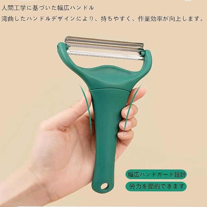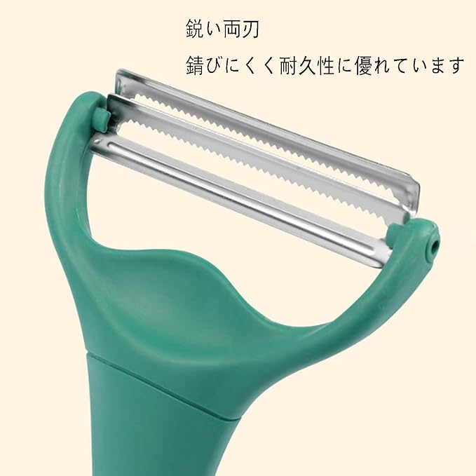 ステンレス製の刃は切れ味と耐久性に優れており、果物や野菜の皮を簡単に削り、細かい糸までも簡単に切り取ることができます。これを使用して、キャベツ、紫キャベツ、キュウリなどの野菜を細かくスライスし、手間を省くことができます。