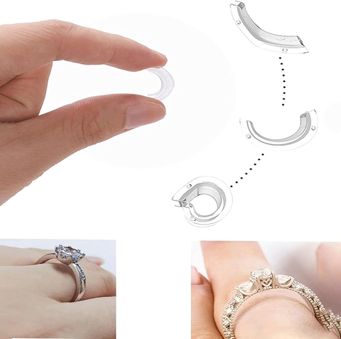 【Bookwarm】指輪 サイズ調節 リングアジャスター【二種類:粘着テープ仕様17枚 嵌入式仕様8枚】滑り止め 貼るだけ 指輪脱落防止用 リングサイズ調整用シリコンパッド 透明で違和感なく DIY サイズ調整 二種類仕様で合計25枚,ルーズリング用 (8)