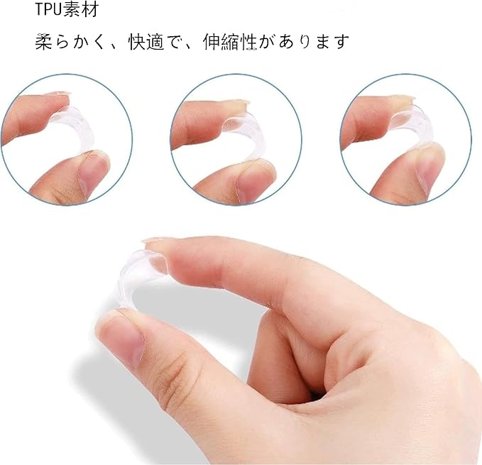 【上質な素材】目に見えない柔らかいTPU素材は、り柔軟性が良いシリ,耐摩耗性と弾力性を備えている。リ着けるし、肌にもやさしい。拭き取りデザインは指輪に非常に適しており、便利で快適で、指輪の美しさに影響を与えません。人体に害を及ぼす素材は使用しておらず、肌にもやさしいです、無臭で環境に優しいです。