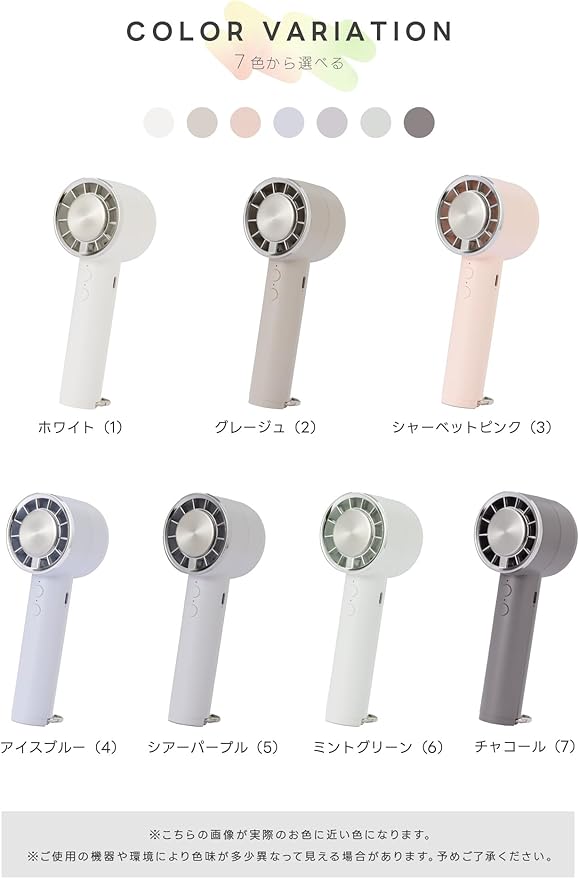 ✅【選べる7色、おしゃれで実用的】 ホワイトやミントグリーン、チャコールなど全7色展開。シンプルで洗練されたデザインは、男女問わず日常使いにフィット。夏のギフトにも喜ばれる1台です。