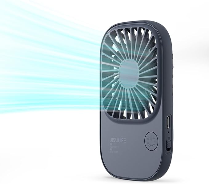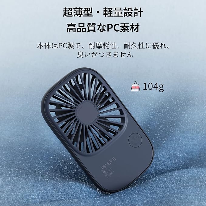 【高品質な設計】JISULIFE携帯扇風機本体は高品質のPC素材を採用しており、耐摩耗性と臭いのない耐久性があり、細かいDCブラシレスモーターを内蔵し、低騒音運転は、回転慣性の原理を使用して、弧状のブレードがより強力に回転して、より親密です。