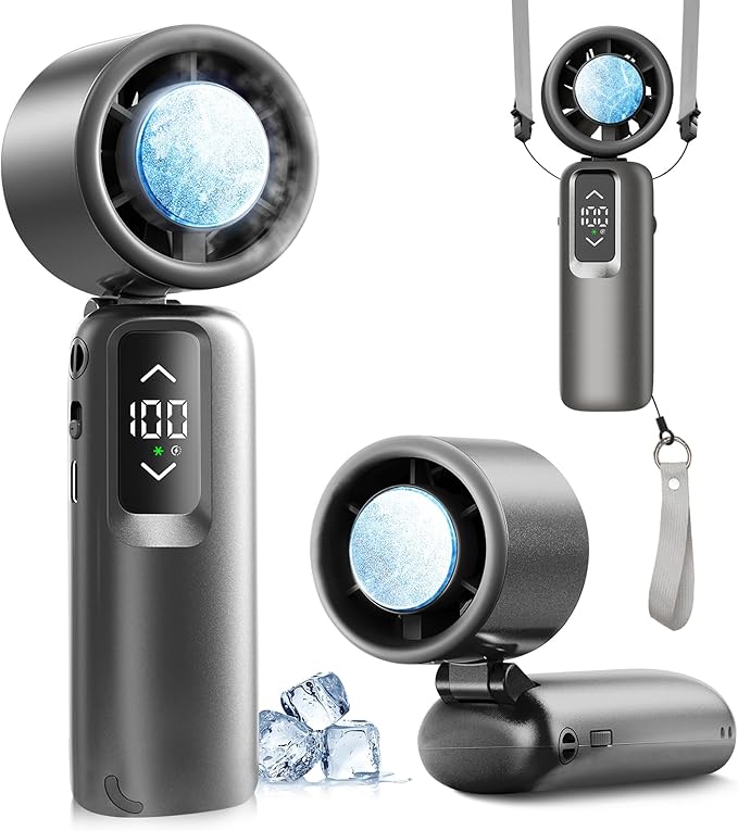 【2025夏新設計】携帯扇風機 ハンディファン 手持ち 卓上け 首掛け 冷却プレート搭載 接触冷感 100段階風力調節 LED表示 6000mAh 長時間稼働 USB Type-C急速充電 3way使用 折りたたみ 持ち運び 小型 静音 軽量型(スターリ ght グレー)