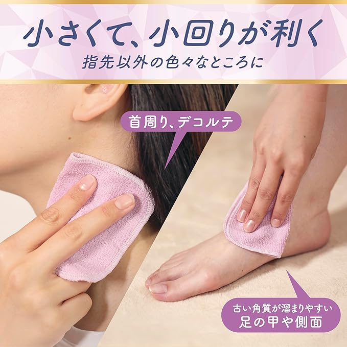 プロテケアネイル協会Ⓡ監修 泉州産タオル生地に、ゴムのコーティングをすることで、お肌の汚れ・角質に対する吸着力・摩擦力を発揮。 コンパクトサイズで小回りが利くので、爪の甘皮・薄皮、指の間、手の甲、足の垢、耳の裏など、細かいところのケアに活躍してくれます。 片面はソフトな平織、もう片面はややハードなパイル地になっています。