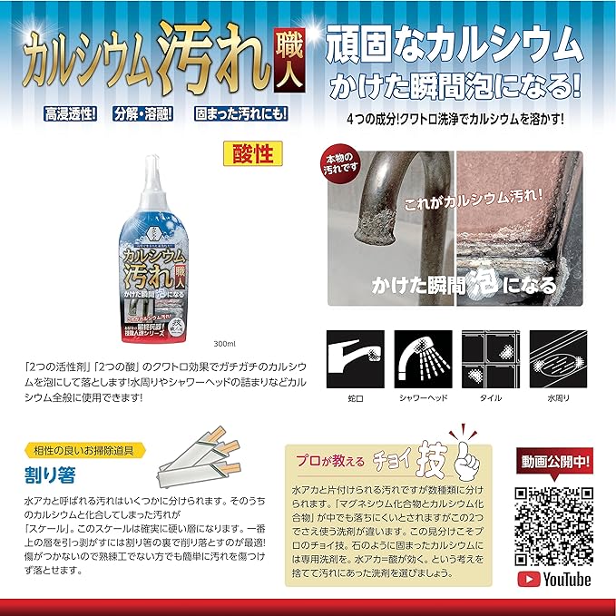 【カルシウム水垢】4つの成分でカルシウム汚れを泡にする! カルシウム汚れ職人300ml