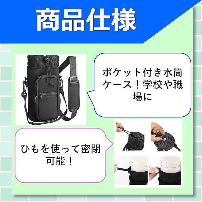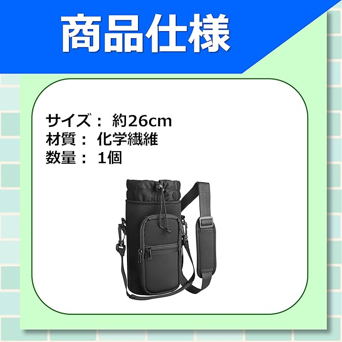 【断熱&防水素材】高品質素材で冷たさ・温かさをキープ。 【ショルダーベルト付きで持ち運び楽々】調節可能なベルト付きで、子供から大人まで快適に使用可能。 【500ml対応】様々なサイズのボトルにフィット。学校、アウトドア、旅行などに最適。 ️【衝撃吸収でボトルを保護】落下や擦れによるダメージから水筒をしっかり守る設計。 【おしゃれなデザイン&軽量】シンプルでスタイリッシュな見た目。日常使いからプレゼントにもおすすめ。