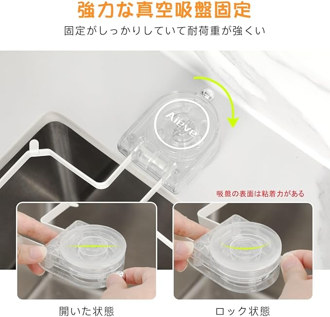【吸盤式】三角コーナー 水切りネットホルダー は強力な真空吸盤固定を採用し、吸盤の表面は粘着力があり、よりしっかりと固定されます。水で洗うと粘着力が戻り、いつでも取り付け位置を調整できます。シンクの内壁やシンクの周りに固定できます。