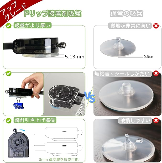 【超強力吸盤】吸盤の吸着力が非常に強力で、安心して使用できます。キッチンでの日常使用において、安定性を最大限に保障します。