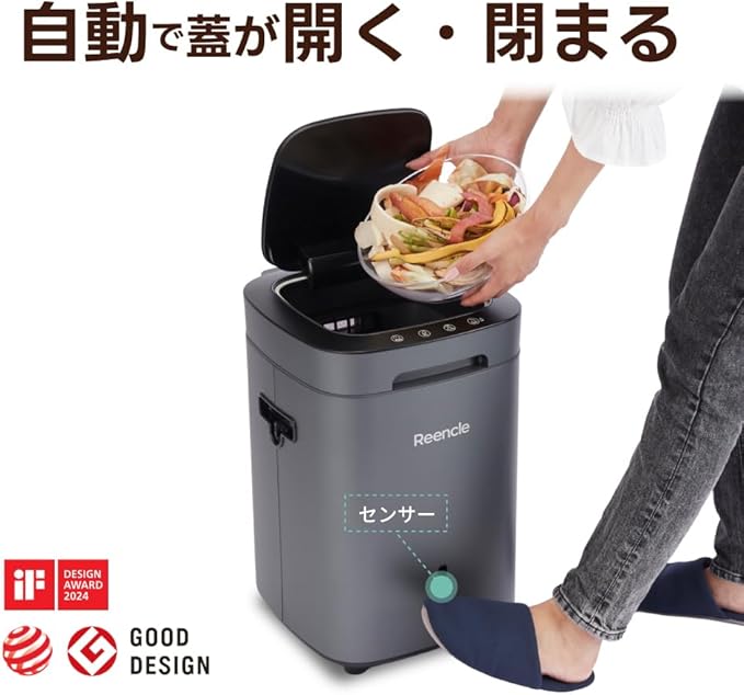 Reencle Prime 家庭用 生ごみ処理機 ハイブリッド式( バイオ式 乾燥式 ) 全自動 強力脱臭システム 消音設計 (ブラック)