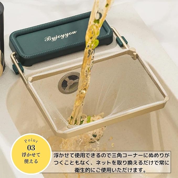 三角コーナー 浮かせる 水切りネットホルダー 三角コーナーいらず 本体 三角排水ラック シンク 折りたたみ シンク ゴミ受け 台所 おしゃれ 棚 生ゴミ キッチン用品 グリーン