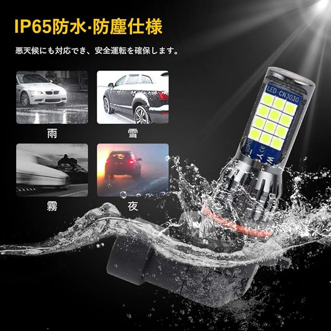 【発光効率に優れ】高品質3030SMDチップ採用、均一 高効率の発光特典を持って、超輝度で普通のチップと比べ発光率はアップします。市販のハロゲンより省エネルギーの上で、明るさは大幅にアップ。夜間の走行が非常に楽になり、安全に運転しています。