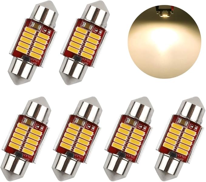 LED ルームランプ T10 31 電球色 暖色 キャンセラー内蔵 T10 31mm トランク ルーム バルブ マップランプ 室内灯 車内灯 ラゲッジランプ ナンバー灯 汎用 LEDバルブ 12V 車用 無極性 両口金 LEDライト 6個入
