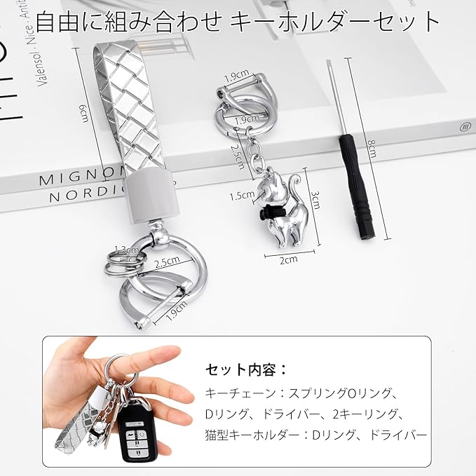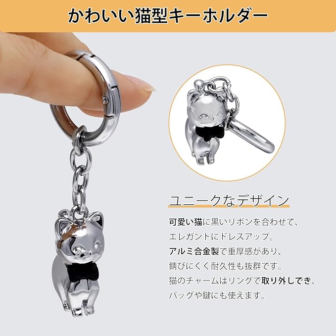 【アクセサリー仕様】・商品名:立体猫キーホルダー セット ・素材:Tpu+亜鉛合金(クロームメッキ加工) ・カラー:銀色/シルバー ・セット内容:キーチェーン(約全長12cm/28g)、猫型キーホルダー(約全長8cm/35g)