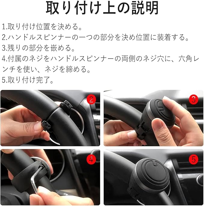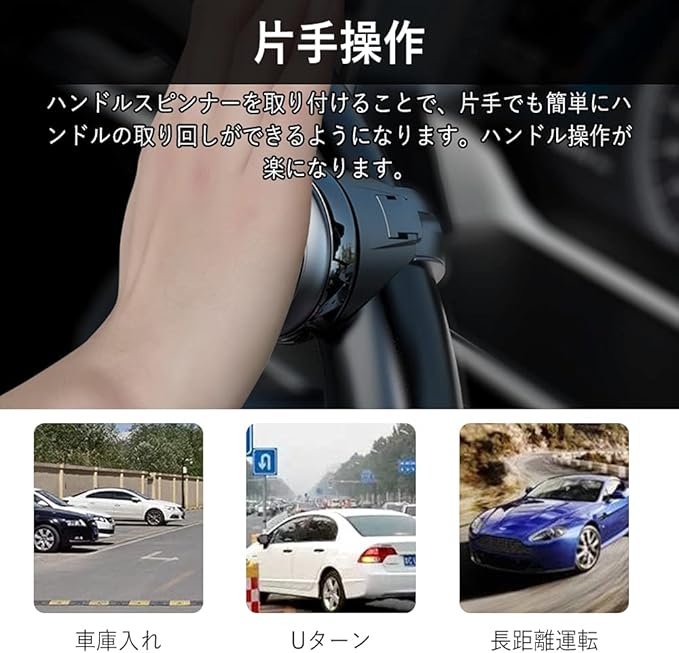 【片手操作】ステアリングホイールノブを取り付けることで、片手でも簡単にハンドルの取り回しができるようになります。両手での運転が難しい方や腕に障害がある方の運転補助具としても利用されます。