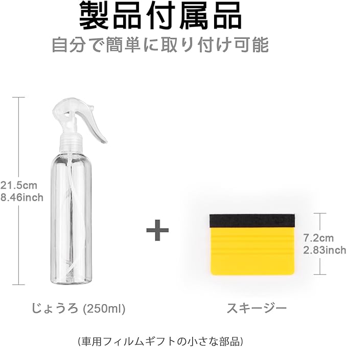 【取り付け簡単】取り付け前に車体の寸法を比較することができます。まず車の表面のホコリや汚れをきれいにしなければならない。貼り付け前、保護フィルムを剥がし、車体とフィルムに水をかけてください。貼り付け後、スクレーパーを使用して空気や水分を追い出します。製品の詳細にある取り付けビデオと取り付けチュートリアルをご覧ください。