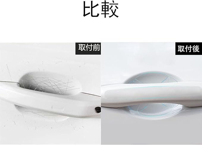 違和感なく:曲面に特化した特殊な形状で、より美しく貼りつき、気泡の発生が大幅に減少しています 。違和感なくぴったりフィットします。車のドアハンドルをしっかり守ります。