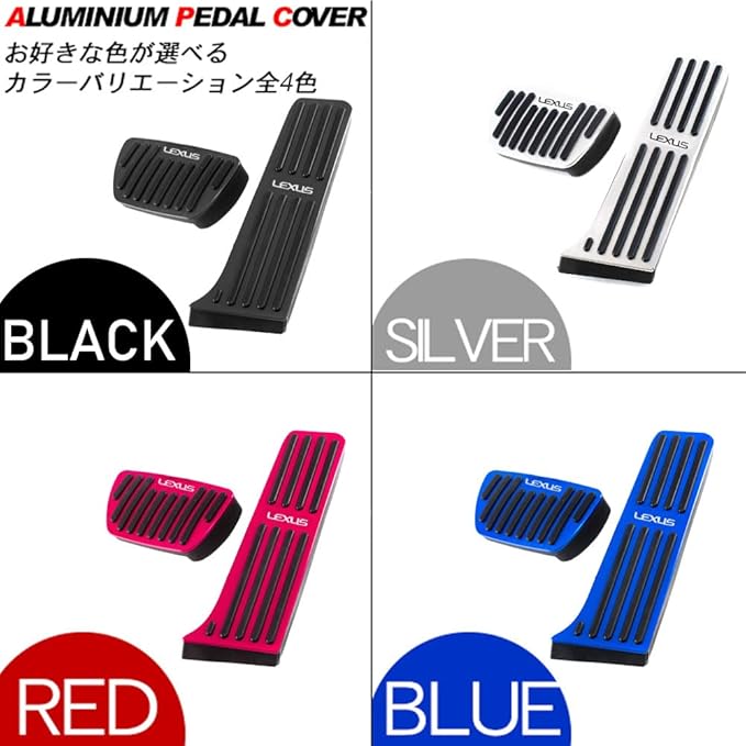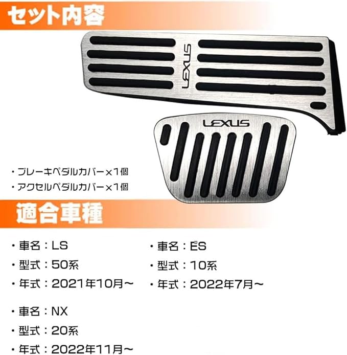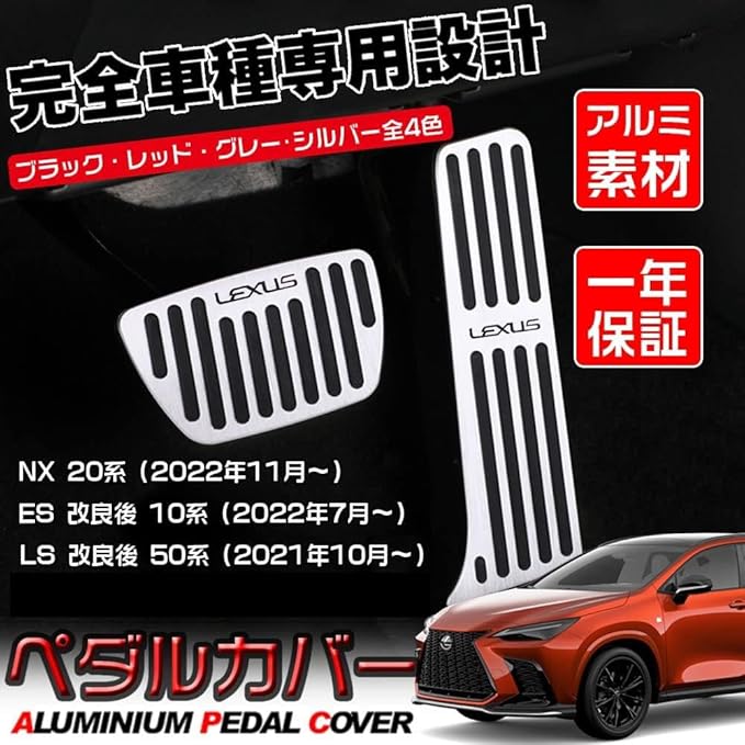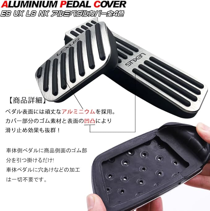 レクサス 新型NX 20系 改良後 ES 10系/LS 50系 アルミ ペダル アクセル ブレーキ カバー 工具不要 滑り止め付 被せる ゴム カスタムドレスアップ パーツ(シルバー)