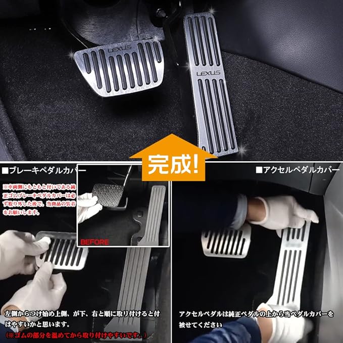 1.アクセルペダルは純正ペダルの上から当ペダルカバーを被せてください