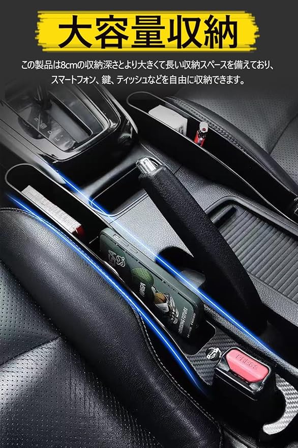 【適用車種・隙間クッションで座席の隙間を埋める】:レクサス F-Sportなどに対応。座席の隙間をしっかりと埋める隙間クッションで、物が座席の下に落ちるのを防ぎます。シートの隙間にピッタリフィットして、物を紛失する心配がありません。