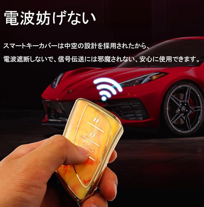 【プレミアム素材】キーケースには高品質衝撃を吸収してくれるTPU素材を採用しており、軽量で丈夫で弾力がある、防塵、耐衝撃、耐水性、カビ耐性、着地緩衝の効果があります。二層素材で、落下などの衝撃を緩和し、愛車のスマートキーに高い保護力を提供できます。スマートキーカバーは中空の設計を採用されたから、電波遮断しないで、信号伝送には邪魔されない、安心に使用できます。