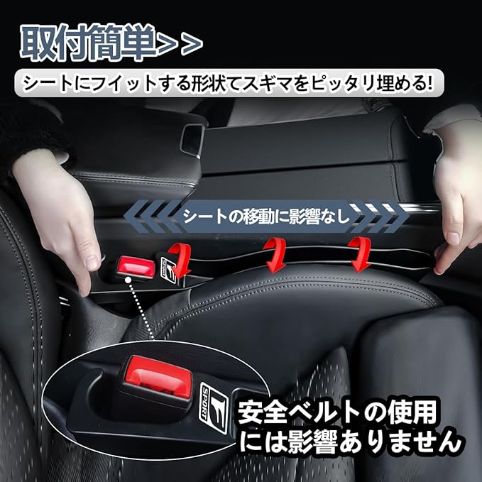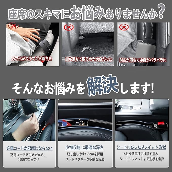 ✅【大容量収納&落下防止】 座席の隙間に落ちた鍵や携帯電話を探し回る手間を解消!8cmの深さを持つ広めの収納スペースで、鍵、携帯電話、財布、イヤフォンなど、日常的に使うアイテムをしっかり収納できます。他の隙間クッションより広いスペースを提供し、車内をスッキリと整理整頓。座席の隙間を有効活用し、落下防止機能で安全で快適なドライブをサポートします。【適用車種】レクサス F-Sportなどに対応。