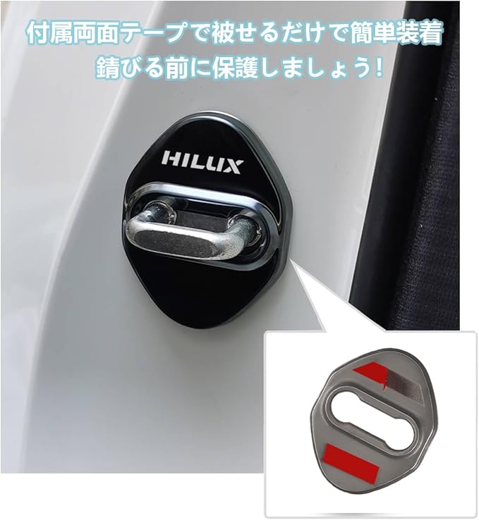 トヨタに適用 ハイラックス(HILUX) GUN125 120系(2017年9月~) に適合 ドアストライカーカバー専用 ドアロックカバー ステンレスカバー 簡単取り付け メタリック 4個セット