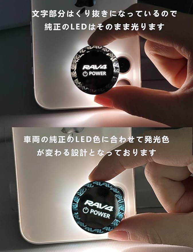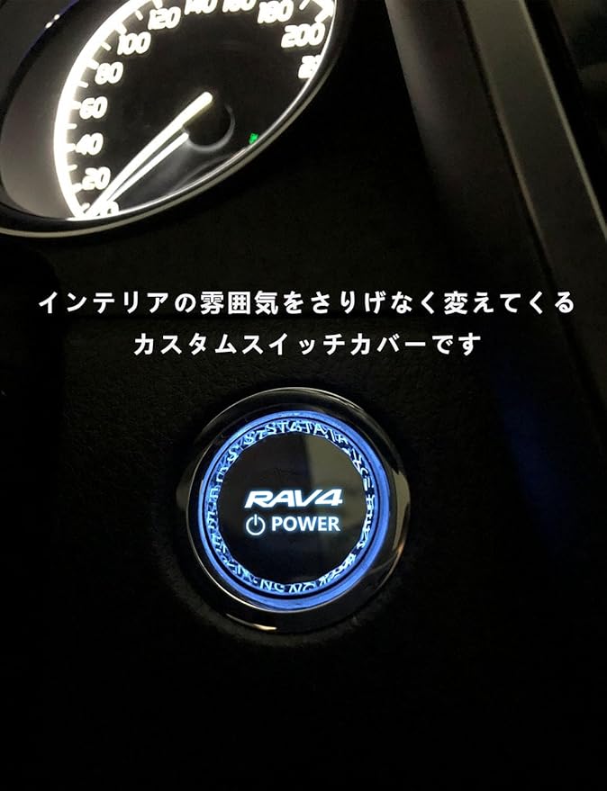 【特徴】このRAV4車に適用するスタートボタン スイッチカバーはクリスタル表面処理で文字部分はくり抜きになっているので純正のLEDはそのまま光ります。 スターターリングが非点灯時も存在感抜群!装着することでご愛車のインテリアを引き締め、高級感を演出します。さらにPOWERロゴ入りで、スタイリッシュな印象を引き立てます。