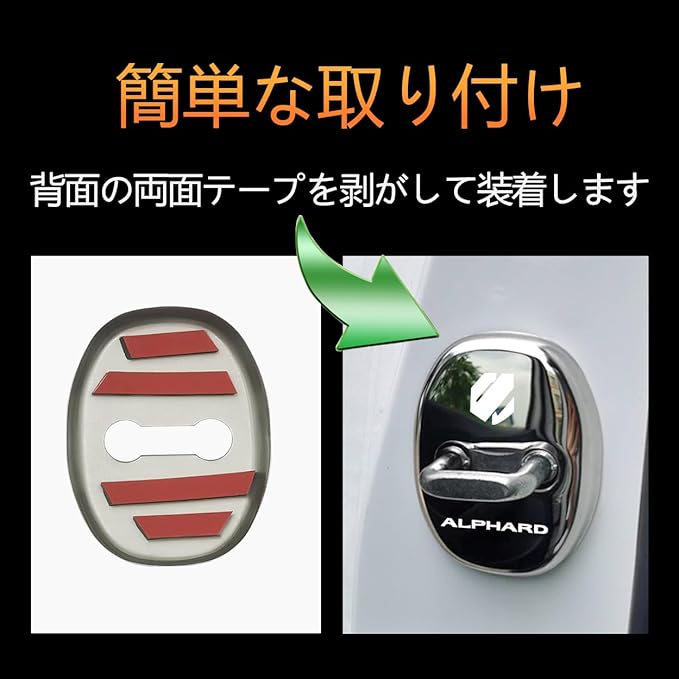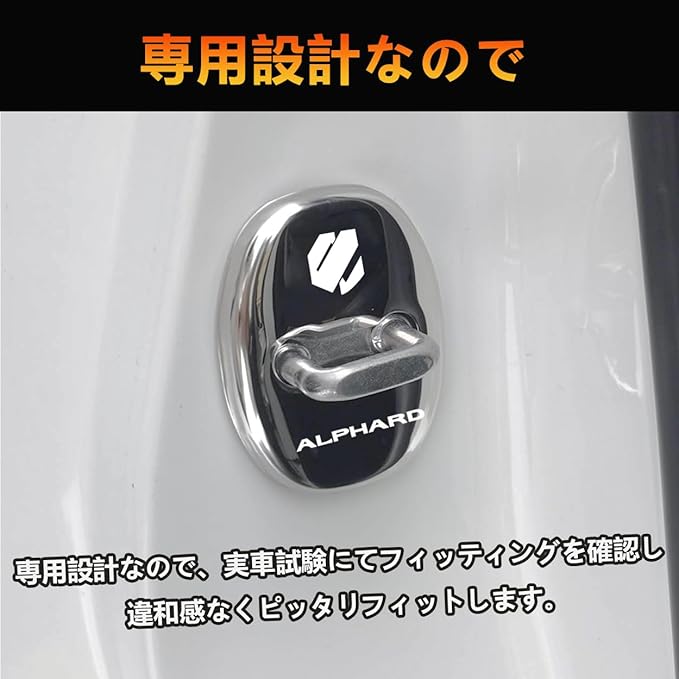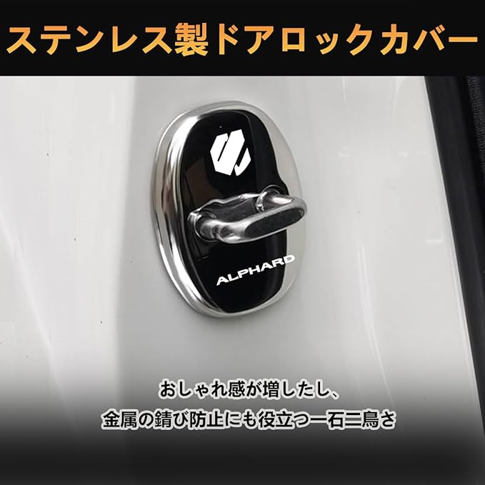 トヨタに適用 新型アルファード(ALPHARD) AGH40W AGH45W 40系(2023年6月~) に適合 ドアストライカーカバー専用 ドアロックカバー ステンレスカバー 簡単取り付け メタリック 4個セット