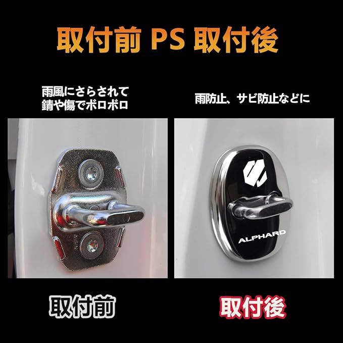 トヨタに適用 新型アルファード(ALPHARD) AGH40W AGH45W 40系(2023年6月~) などに適合するドアストライカーです。ドアロック カバー4pcs 必ず入札前に装着する車のストライカーの形をご確認ください。その他車種でも形状が同じであれば取付可。