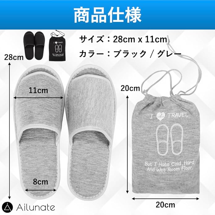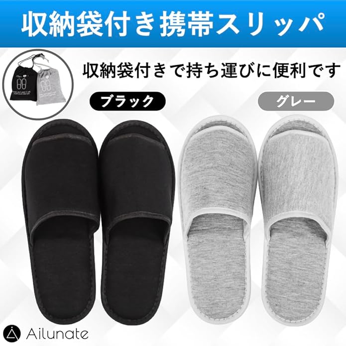[Ailunate] 携帯スリッパ 折り畳み 袋付き 室内 コンパクト メンズ レディース 男性 女性 学校 旅行 持ち運び 収納ケース付き