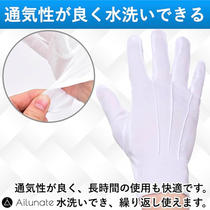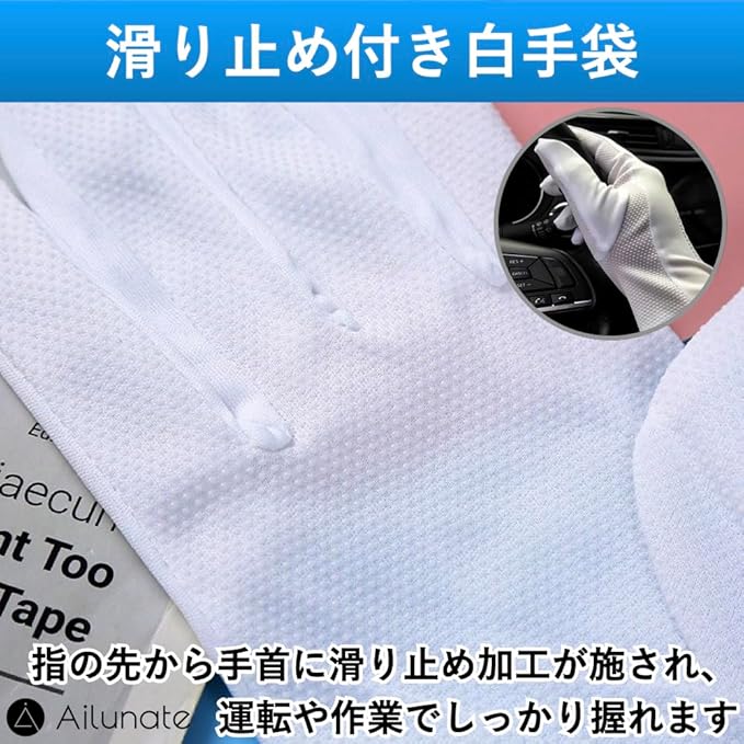 [Ailunate] 白手袋 滑り止め付き フォーマル 無地 薄手 汗吸収 ナイロン バス タクシー 運転手 運転士 選挙 警備用 式典 作業 ホテルマン 10組
