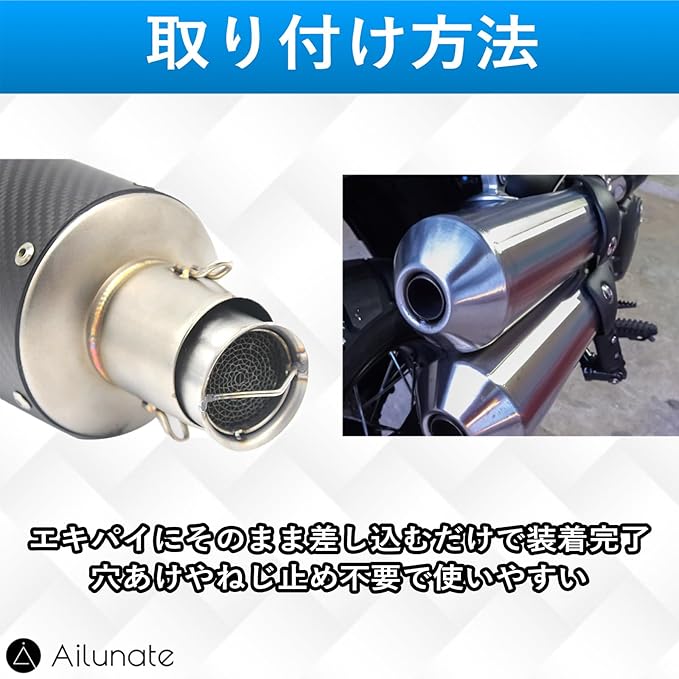 Ailunate インナーサイレンサー バイク バッフル マフラー 触媒 消音 型 汎用 音量 調整 消音器 騒音対策 ステンレス 差し込み (50.8mm用)