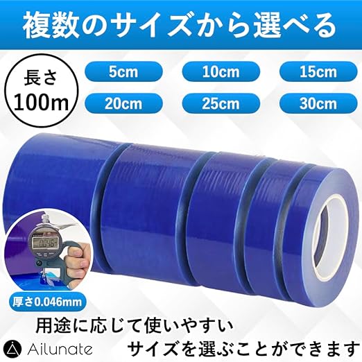 Ailunate マスキングテープ 表面保護 フィルム シート 養生テープ 塗装テープ 剥がせる 車 塗装保護 金属保護 青 ブルー (幅20cm x 長さ100m)