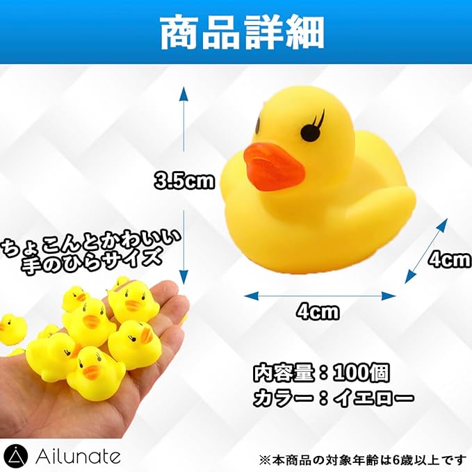 Ailunate アヒル お風呂 おもちゃ あひる ミニ 水遊び お風呂に浮かべるアヒル アヒルちゃん 大容量 100個