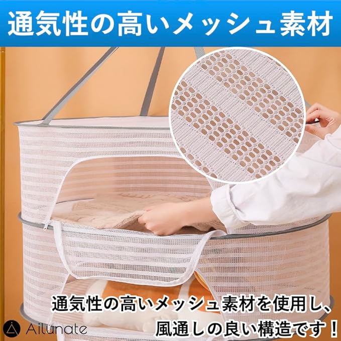 Ailunate 平干しネット 干物ネット 干し物 物干し 平置き 平ぼし 洗濯 ニット セーター 型崩れ 落下防止 干し野菜 干物 (3段)