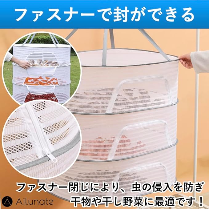 ✅【ファスナーで封ができる】ファスナーで封をすることができ、虫の侵入を防ぎます。干物や干し野菜の天日干しに最適です。