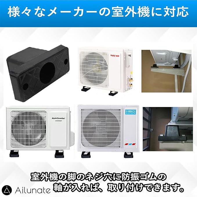 Ailunate 室外機 防振ゴム 4個セット 台 エアコン 防音 土台 防振パッド 騒音軽減 騒音対策 振動対策 滑り止め 固定