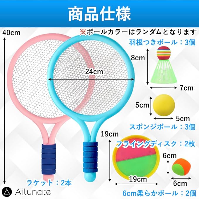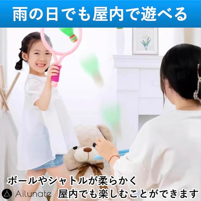 Ailunate バドミントン テニス おもちゃ ラケット 子供 外遊び フライングキャッチボール 子ども ボール シャトル 室内 スポーツ 運動