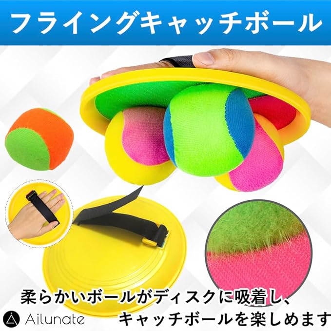 ✅【フライングキャッチボール】柔らかボールがフライングディスクに吸着することで野球グローブのようにキャッチすることができます。親子や兄弟、お友達とキャッチボールを楽しむことができます。