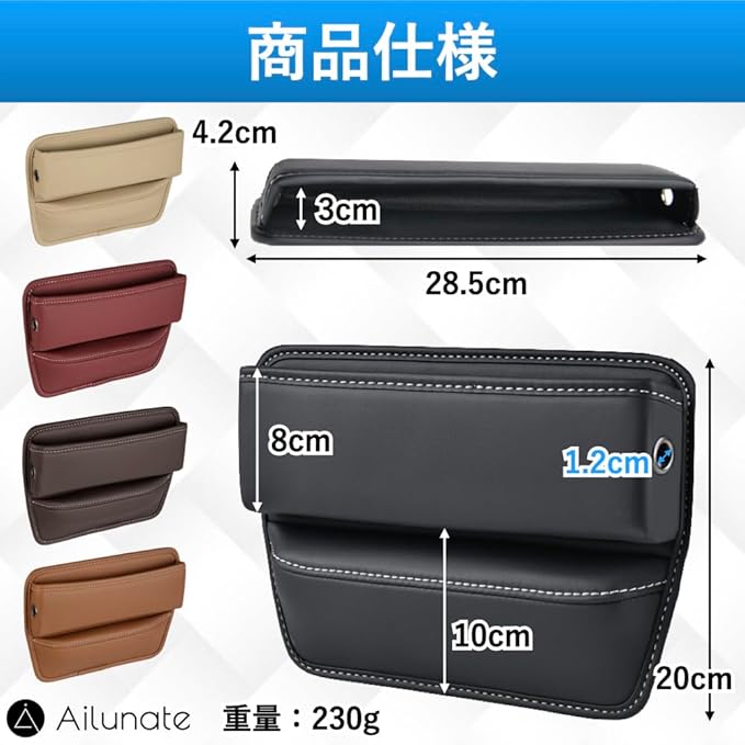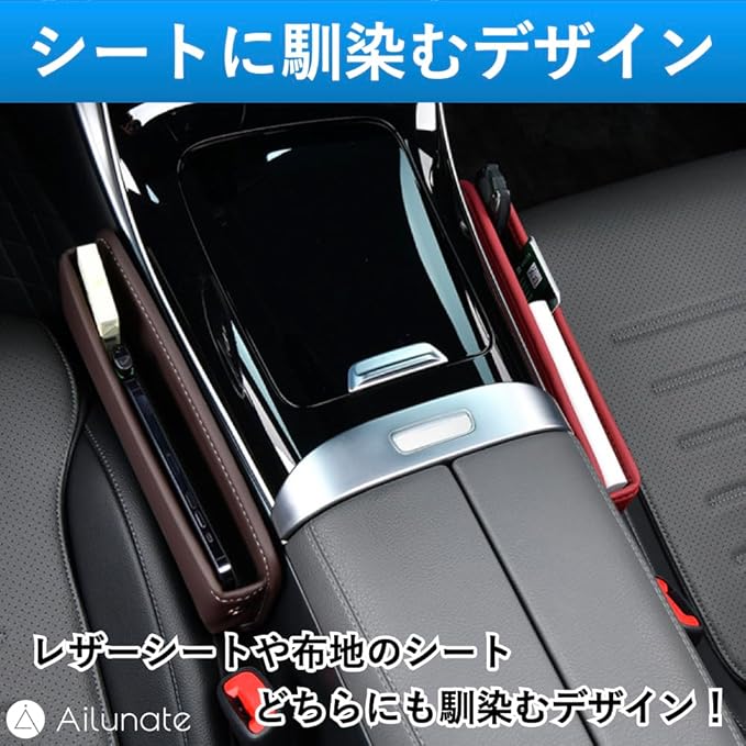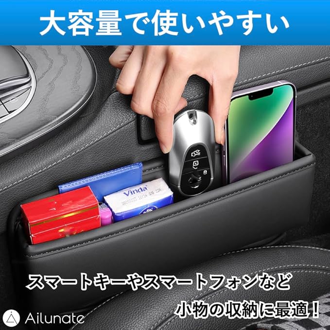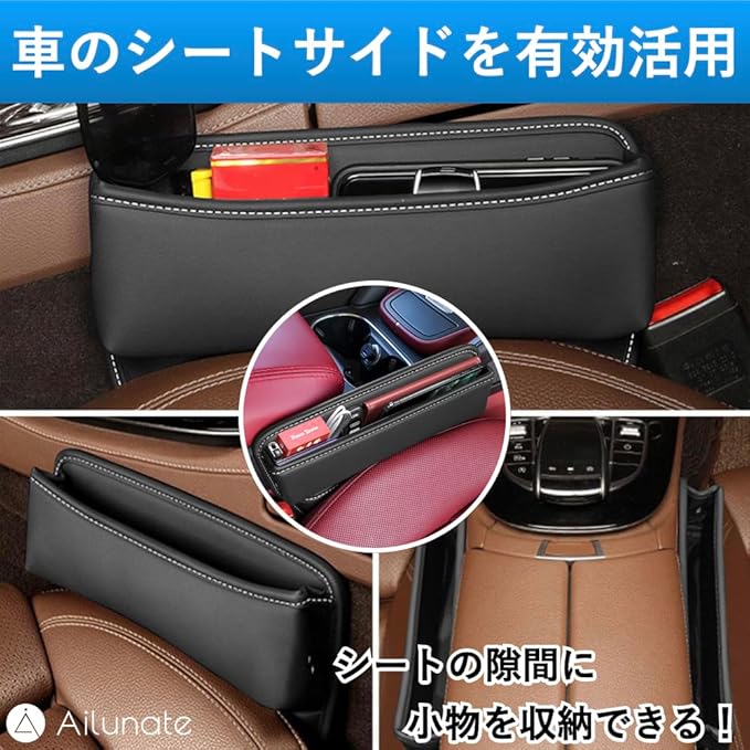 Ailunate 車 収納ポケット カーシート隙間 収納ボックス シートサイドポケット 隙間埋め 車用 小物入れ 運転席 助手席 (ブラック)