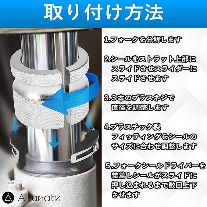 Ailunate フロントフォーク オイルシールドライバー プッシャー 汎用 工具 正立 倒立 両方対応 35mm 45mm対応 インストーラー