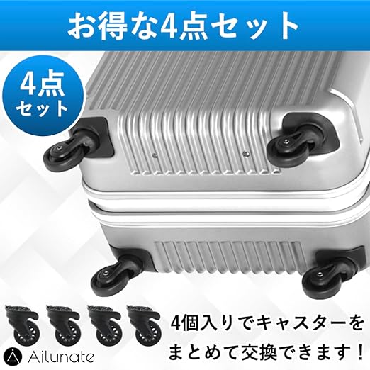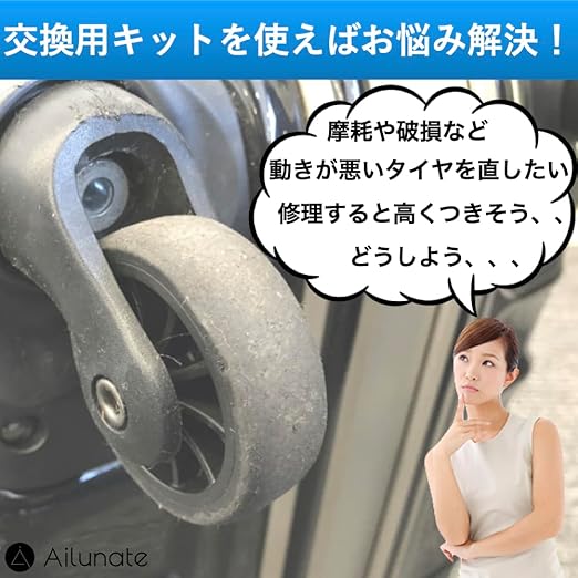 Ailunate スーツケース キャスター 交換 タイヤ キット キャリーケース 車輪 ホイール キャリーバッグ ゴム 静音 修理 部品 車軸 取替え (A90 4個セット)