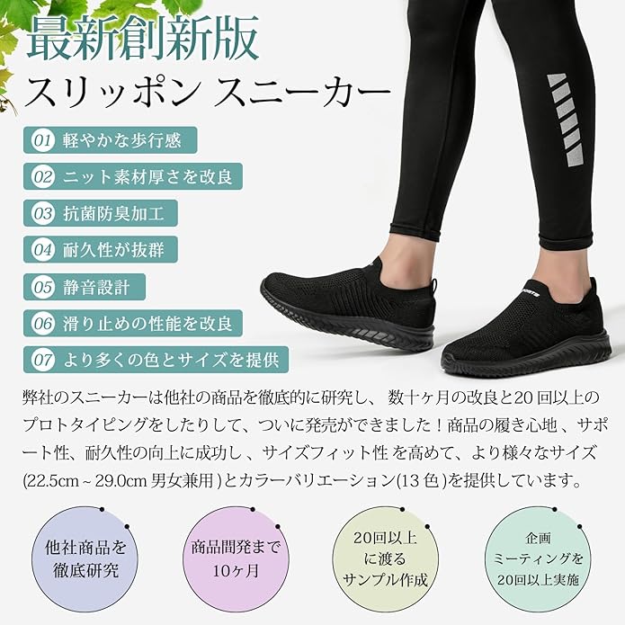 [STRDEOUT] 【創新版快適設計】スリッポン メンズ レディース 紐なしスニーカー メッシュ 靴 ウォーキングシューズ 室内シューズ 上履き大人 履きやすい 白 黒
