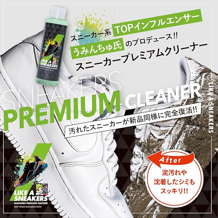 スニーカー系TOPインフルエンサーうみんちゅ氏がプロデュースするLIKE A SNEAKERS 業界でもTOPクラスのスニーカー好きが本当にいい商品だけを開発/販売するスニーカーケア限定商品です。