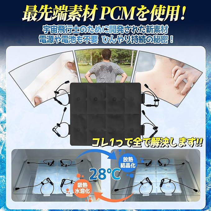 28℃以下で自然凍結:このリュック 冷感パッドは軽量であり、長時間使用しても疲れにくいです。高い防水性を持つ素材を使用し、表面は湿気を吸収してもサラサラです。結露しないため、服や首元が濡れることはありません。また、動いてもズレにくく、アクティブに過ごせるため、真夏の屋外だけでなく室内での熱中症対策にも最適です。