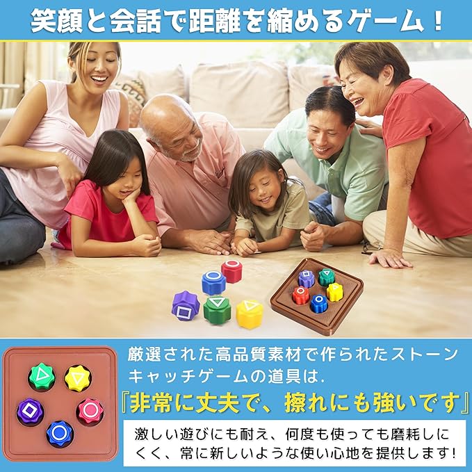 【高品質素材】私たちは品質に徹底的にこだわり、環境に優しく無臭の高品質なPLA素材を採用しています。この素材は、環境保護分野において「優等生」とも称されるもので、生分解性プラスチックに分類され、自然環境に非常に優しい特性を持っています。高品質な素材で作られたストーンキャッチゲームは、優れた靭性と耐摩耗性を兼ね備えています。長時間の使用にも耐え、家庭内やアウトドアで繰り返し楽しむことができます。耐久性が高いため、どんな環境でも安心して使用できます。