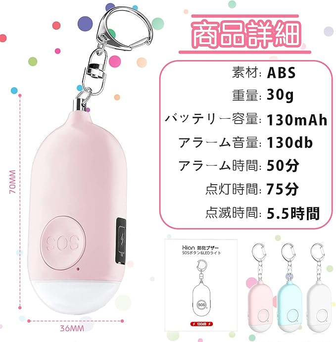 【ジェットエンジン並みの大音量130dB】防犯ブザーを鳴らすときは緊急時です。できるだけ遠くまで音が伝わるように、なるべく大きな音が鳴る方がいいですよね。コンパクトサイズでありながら、130dBの大きな警報音を鳴らせる本防犯ブザーは緊急時に周囲へ確実に異常を伝えます。