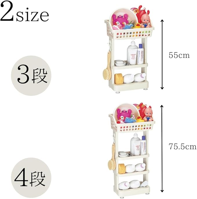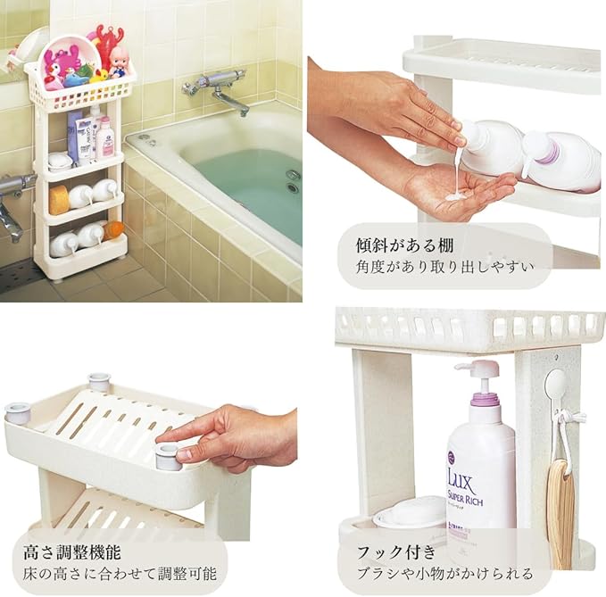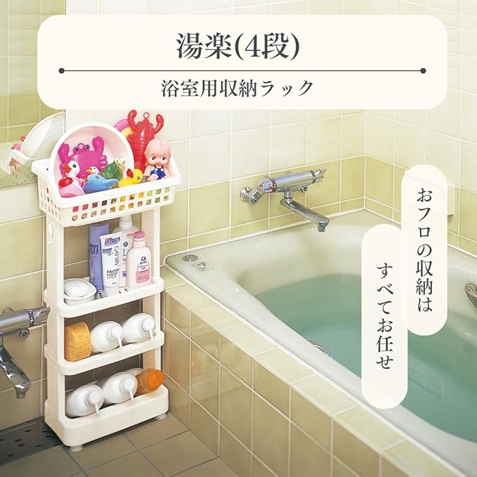 伊勢藤(ISETO) 浴室用ラック 湯楽(4段) ホワイト 幅36.0 奥行21.5 高さ71.5cm 日本製 大型バスケット付 フック付 吸盤 置き型 コーナー 吊り下げ 高さ調節可能 I-225