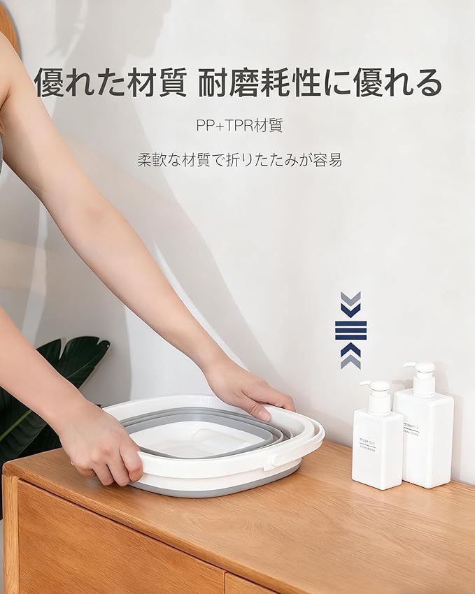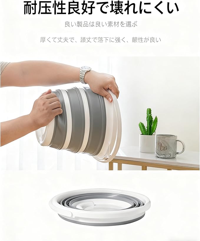 便利な折りたたみ式洗面器は、旅行やアウトドアでの使用に最適です。PP+TPR素材を使用し、耐久性と柔軟性を兼ね備えています。コンパクトに折りたためるため、収納スペースを最小限に抑えることができます。展開時は最大24cmの高さまで広がり、折りたたむと約4.5cmまでスリムになります。丸型タイプは直径33.5cm、四角型タイプは31cmと、用途に応じて選べる2つのデザインをご用意。グレーとホワイトのツートンカラーで、モダンなデザインに仕上げています。キャンプ場での食器洗いや野外での手洗い、自宅での様々な用途にも対応できる実用的なアイテムです。軽量で持ち運びやすく、使わない時は省スペースで収納できるため、アウトドアギアとしても室内用品としても重宝します。耐久性のある素材で作られているため、長期間の使用にも耐えられます。